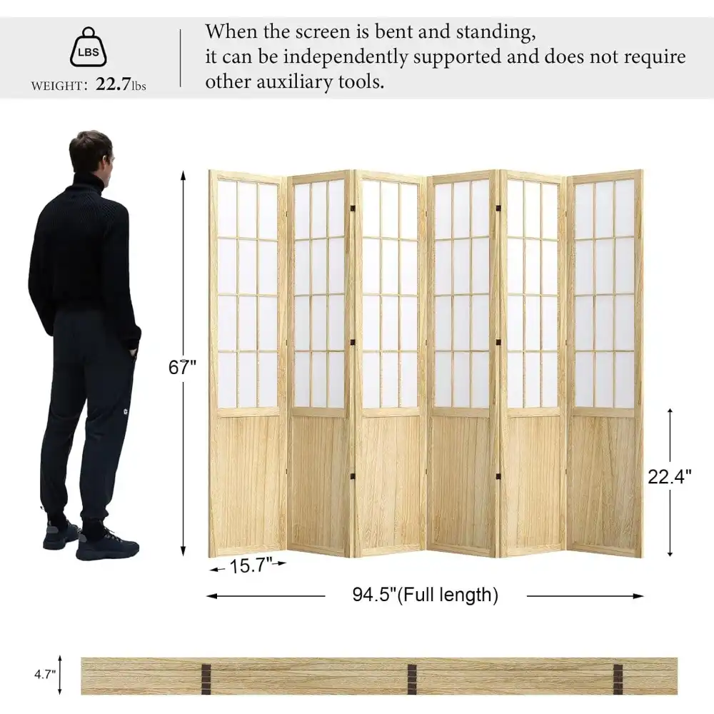 Experience the timeless elegance of traditional Asian design with this exquisite Chinese Japanese Shoji wood folding screen divider that seamlessly blends authentic oriental craftsmanship with modern functionality. Standing at an impressive 66.9 inches tall and 58 inches wide, this six-panel room divider showcases the classic Shoji lattice pattern on premium paulownia wood construction.